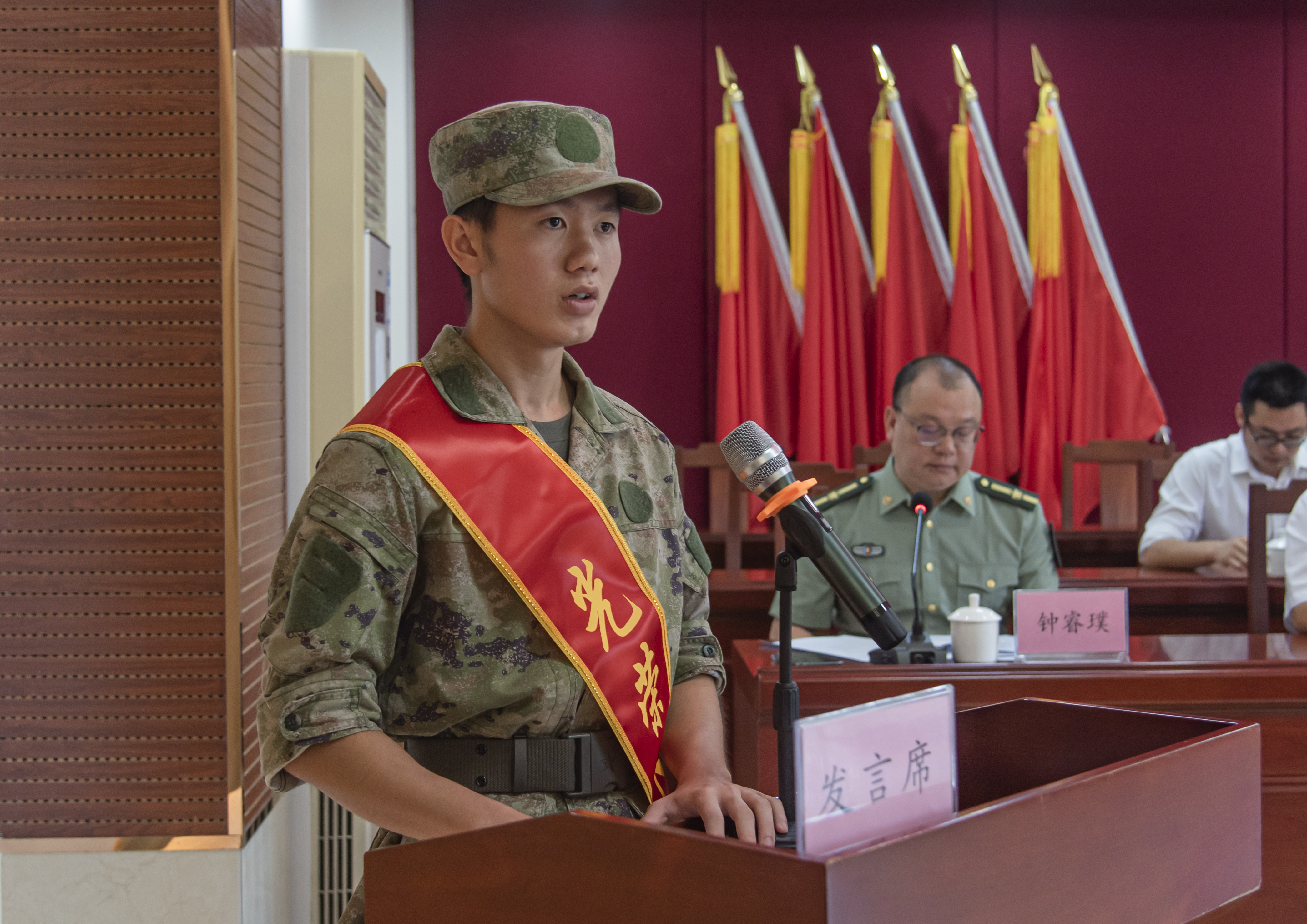 会上,新兵代表吴育科发言,他表示不会辜负家乡的嘱托,到部队后决心做到刻苦学习,苦练本领,服从命令,听从指挥,为家乡人民争光,为军队现代化建设做出最大贡献。