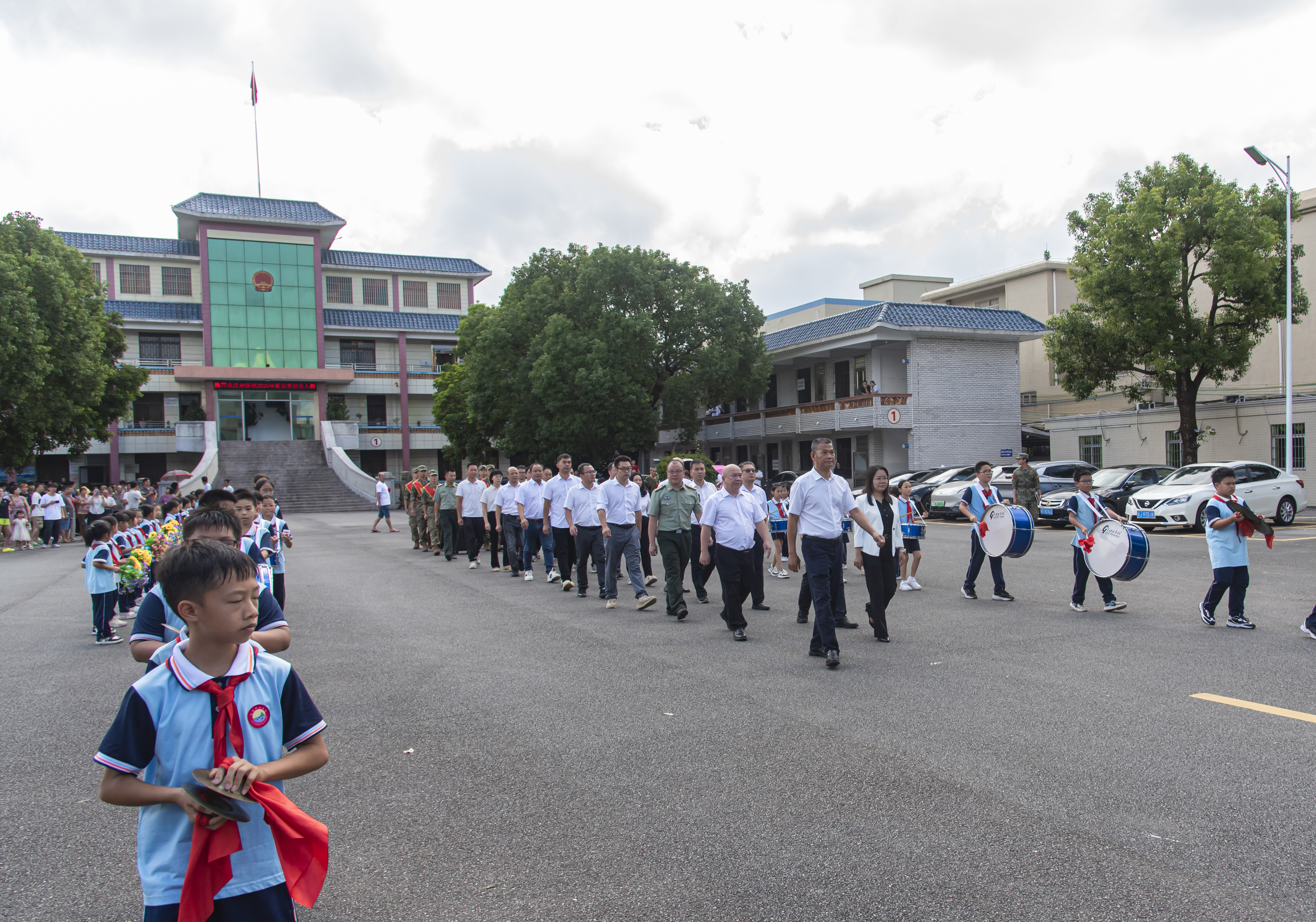 赤溪中心小学的学生代表为即将踏入军营的新兵佩戴胸花:6名少先队员行少先队礼,6名新兵回敬军礼,两种敬礼都是祖国的希望,红色基因传承一代接一代。