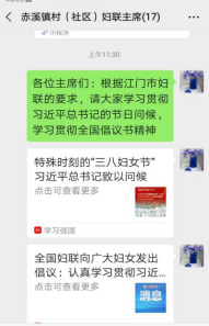 结合新冠肺炎疫情防控工作,为纪念2020年“三八”国际妇女节,镇妇联主席李小仪要求各村(居)委会妇联主席强化责任,留意镇内困难妇女儿童家庭生活情况,特别是学生在家线上学习情况等,送上“娘家人”的温暖。
