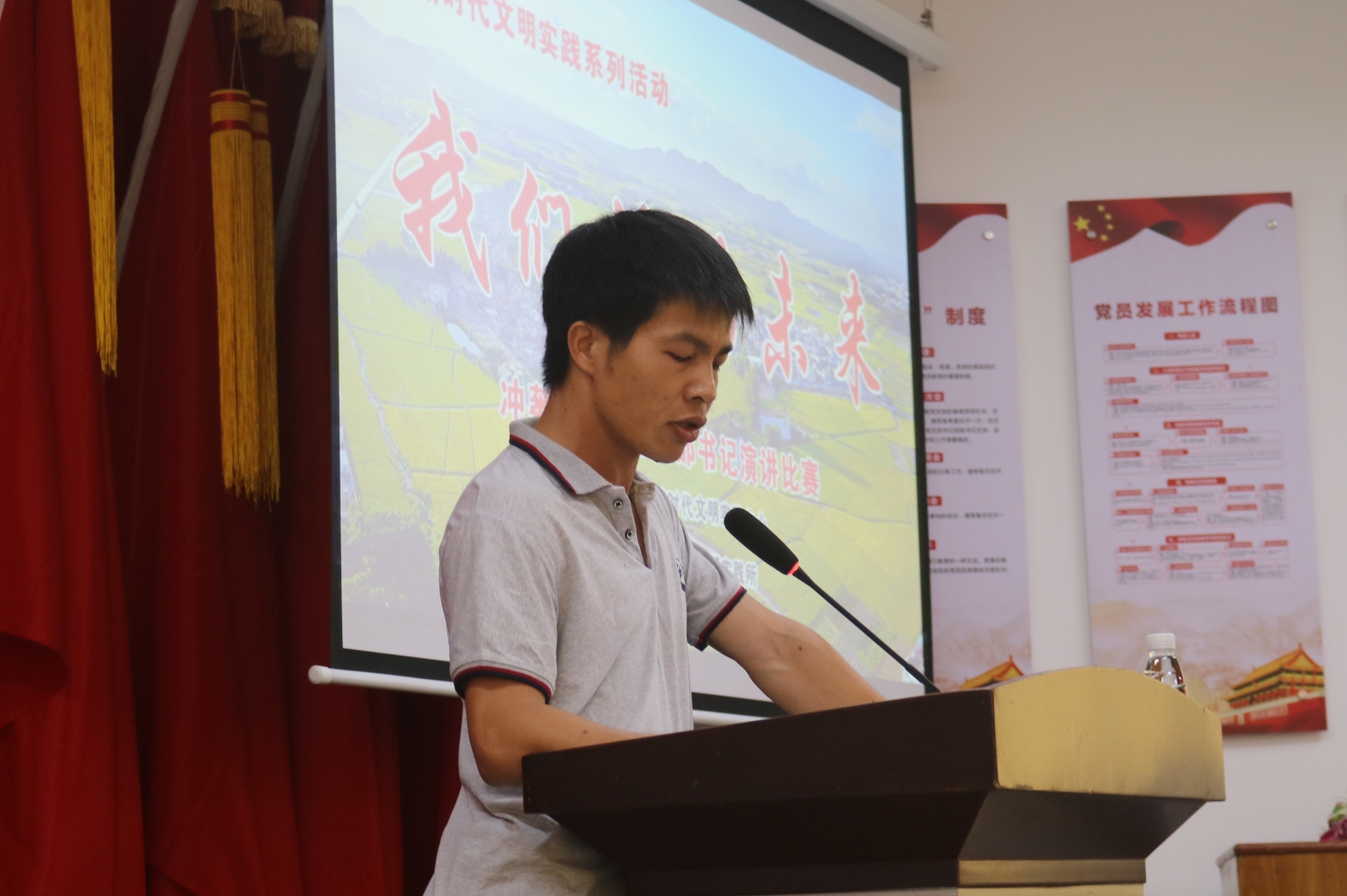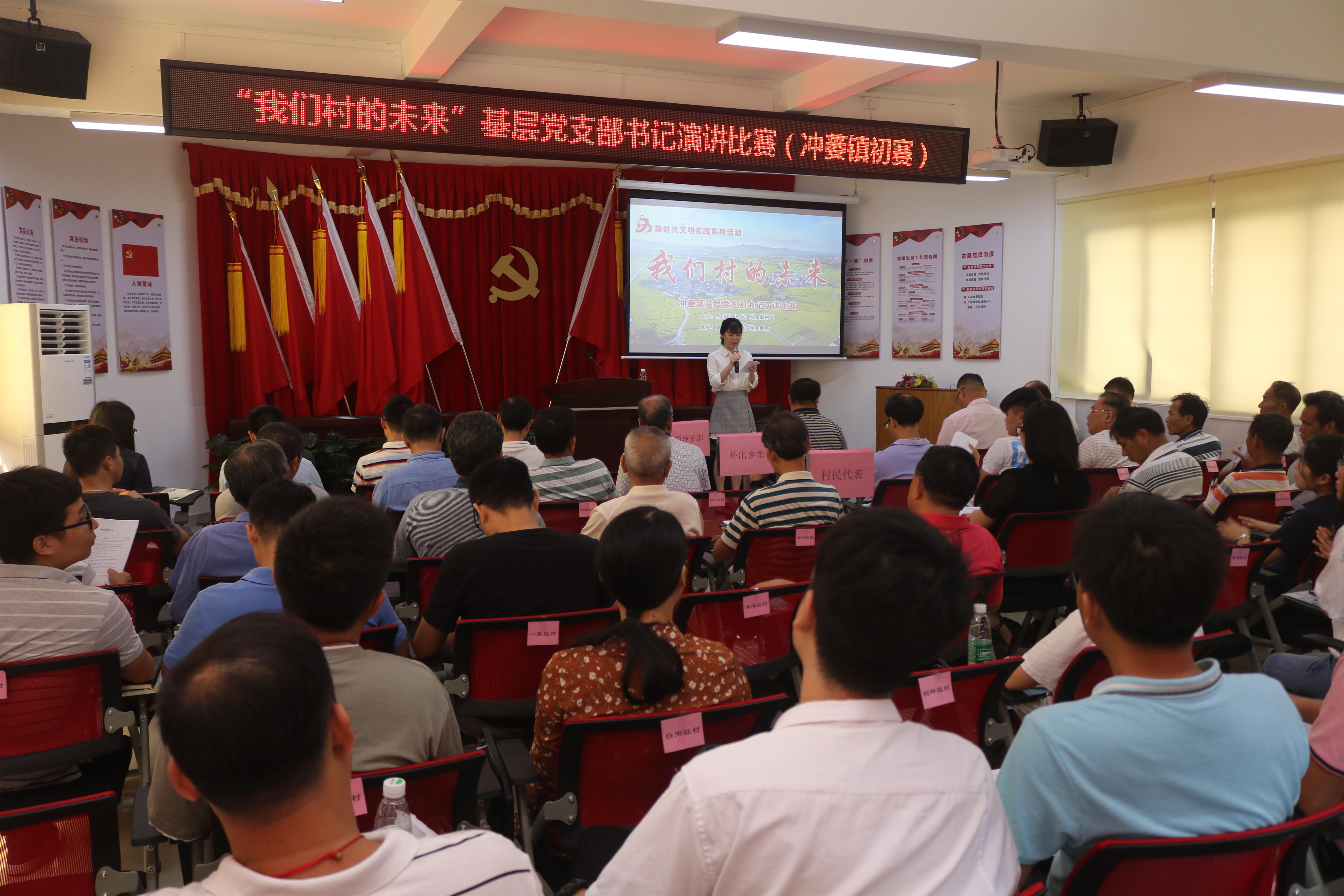 为推动习近平新时代中国特色社会主义思想飞入侨乡寻常百姓家,大力推动我镇乡村振兴战略进程,积极发挥村支部书记在群众中的示范引领作用。4月29日上午,冲蒌镇在镇新时代文明实践所举办“我们村的未来”基层党支部书记演讲比赛。镇领导班子成员、各驻村组长、各村(居)民代表、外出乡亲代表近80人参加了活动。
