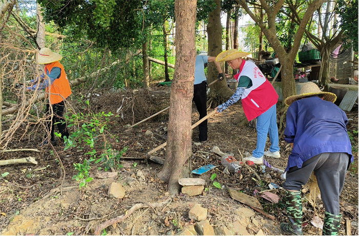 如,海阳村委会东成村谢林叔不仅主动响应号召,还动员村民一同参与:“环境是大家的,我们一起动手,蚊子少了、住着也舒服!”现场大家分工明确、配合默契,用实际行动为改善村庄环境贡献力量。