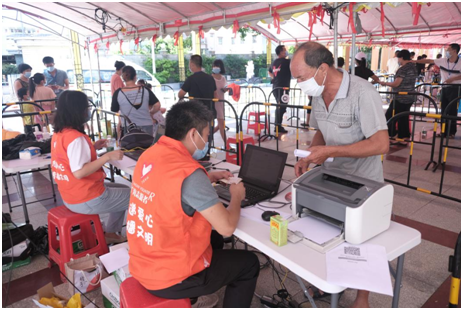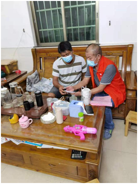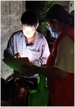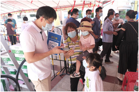 党员干部为有需要的群众用手机登记“粤核酸6”小程序登记信息,生成“葵花码”。