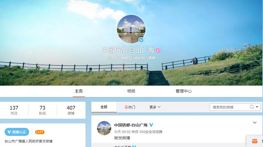 (三)加强信息公开载体的建设。一方面,加强政府门户网站的建设,对政府网站进行认真的调研改版,更加注强政府信息公开栏目的规划、建设和维护管理工作;另一方面,结合当前微博、微信普及率高、操作方式简单、信息传播快的特点,开通了“中国侨都-台山广海”政务微博及“广海发布”微信公众号。从不同方面致力于打造广海镇对外宣传和推介平台,以图文并茂的方式向广大群众提供更多政策宣传、服务咨询、信息发布、意见反馈等一系列优质服务。