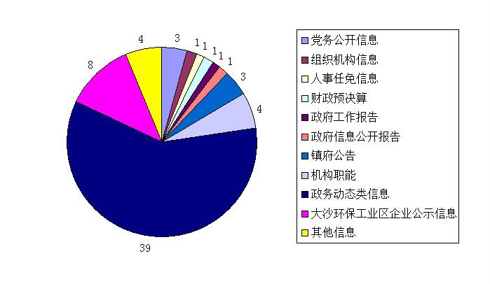 我镇主要通过镇政府门户网站、政务微博、微信公众号、公开栏等方式主动公开政府信息。2015年度,我镇政府门户网站共公开政府信息66条,其中:党务公开信息3条,组织机构信息1条,人事任免信息1条,财政预决算1条,政府工作报告1条,政府信息公开报告1条,镇政府公告3条,机构职能4条,政务动态类信息39条,大沙环保工业区企业公示信息8条,其他信息4条;微信公众平台发布了微信4期共10条信息;微博认证号发布微博301条,其中原创微博8条。