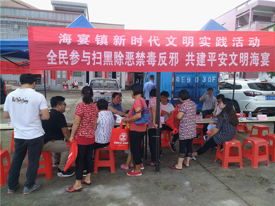 为推动我镇扫黑除恶专项斗争向纵深发展,扩大扫黑除恶专项斗争的宣传覆盖面及纪念林则徐虎门销烟,营造全民禁毒氛围,6月4日,镇综治办联合镇扫黑办、镇禁毒办、海宴派出所、海宴司法所到联和村那马市场开展扫黑除恶专项斗争、禁毒、反邪教宣传活动。