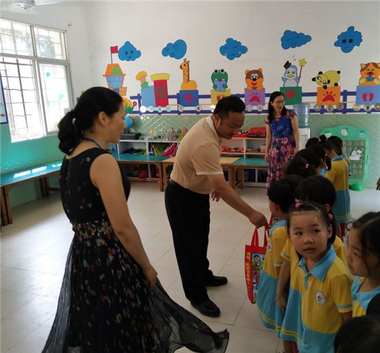 5月31日上午,三合镇委书记李军、镇长赖开颜和镇委委员伍红卫深入到三合镇中心小学、那金学校和念慈幼儿园提前和学生欢度儿童节。