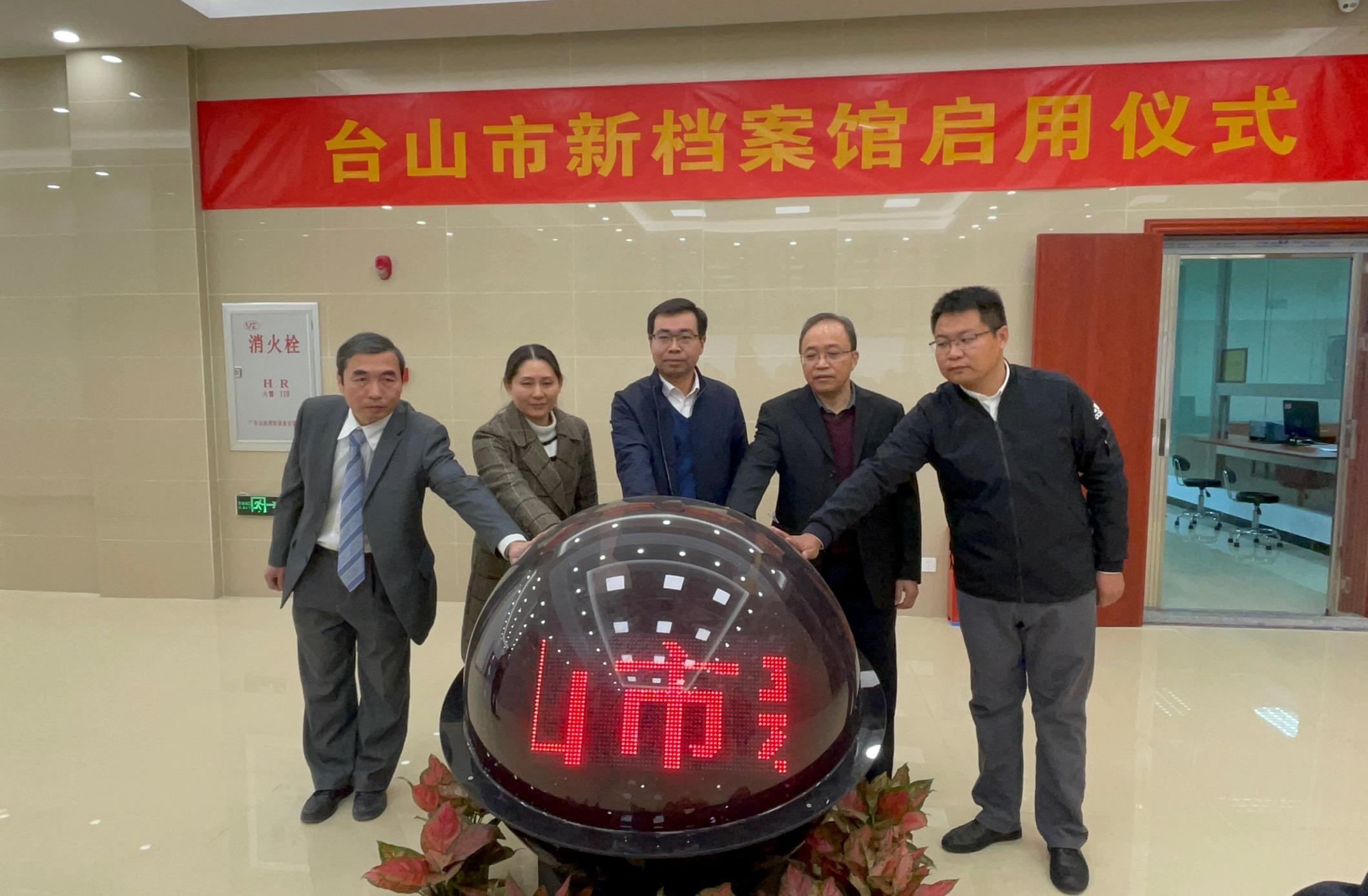 上午10时,江门市委副秘书长、江门市档案局局长余登伟,台山市委常委、市委办主任陈瑞琪等领导出席启用仪式并按下启动球,台山市档案馆全体干部员工及江门市档案局、台山市档案局、台山市建管中心等有关单位代表共同见证这一历史时刻。