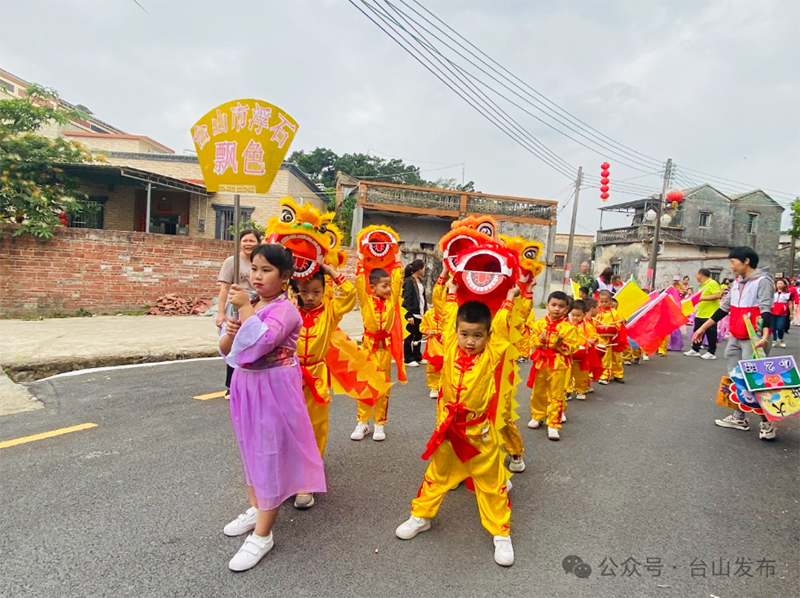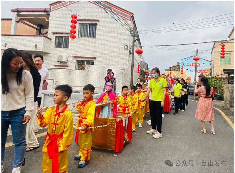4月10日上午,台山斗山镇浮石四坊村小组热闹非凡,一场以“飘扬传统,色彩童年”为主题的农历“三月三”飘色巡游活动在这里举行,吸引了众多群众围观。飘色巡游主角是斗山镇中心幼儿园的小朋友,他们全园出动,共有160多萌娃沉浸式体验非遗文化,在寓教于乐中蓄积传承力量。
