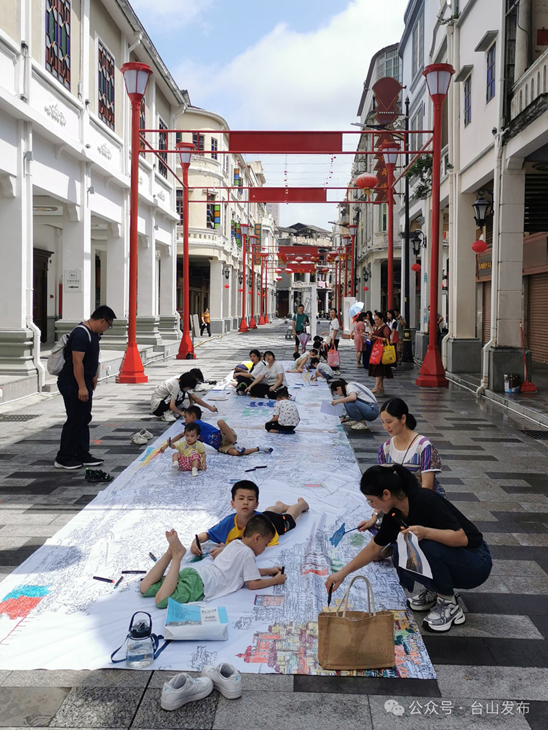在台山元素百米画卷前,家长和孩子们拿起画笔积极绘制,现场气氛热烈。活动集趣味性、知识性与一体,让市民既能学习档案相关知识,又能体验手工制作乐趣,寓教于乐。