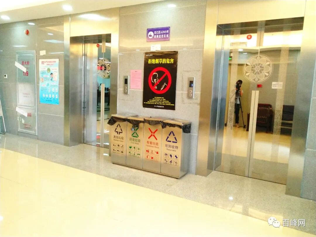 硬件设施方面,在市行政服务中心各公共区域配齐分类垃圾桶。其中,各楼层电梯口设置“四分类”垃圾桶,办公室走廊、服务窗口、卫生间等区域设置“两分类”垃圾桶。